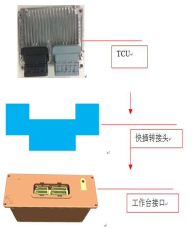(5)刷寫台接口滿足TCU 20萬次/年拔插,且跟換方便, 采用快插方式;快插轉接頭用於連接TCU與刷寫台接口的 中介,有利於接口磨損後快換。接口形式大致如右圖